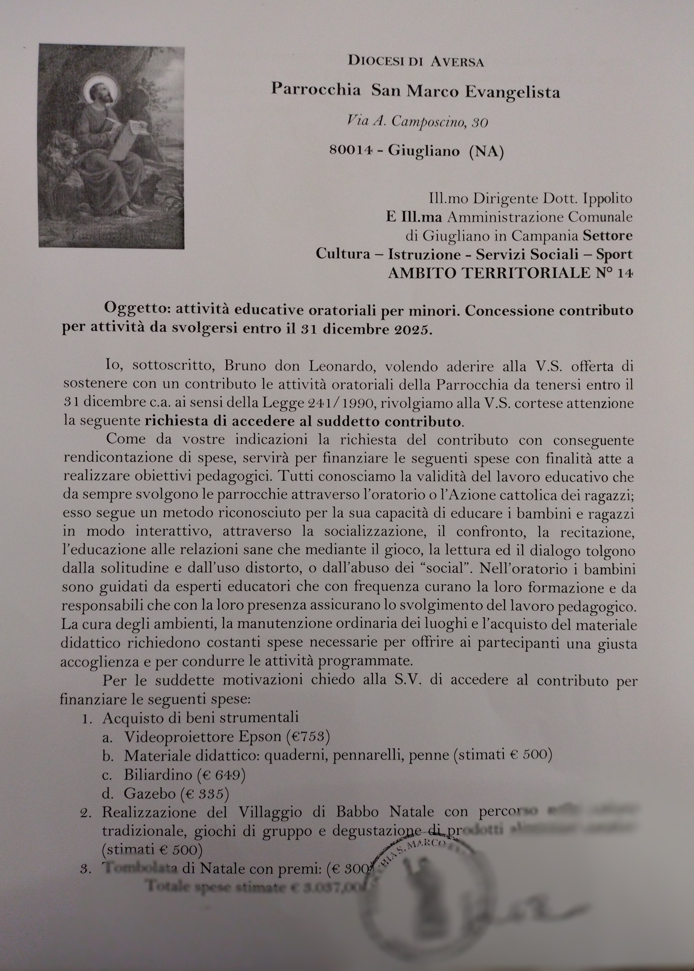 FONDO PER LE POLITICHE DELLA FAMIGLIA ATTIVITA’ SOCIO-EDUCATIVE A FAVORE DEI MINORI ANNO 2025, "PROTOCOLLI DI INTESA CON LE PARROCCHIE DEL TERRITORIO PER LO SVOLGIMENTO DI LABORATORI RIVOLTI AI MINORI NEL PERIODO NATALIZIO"